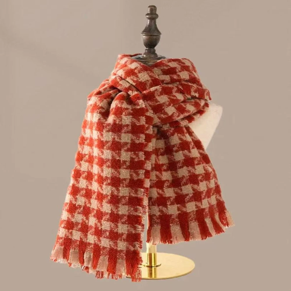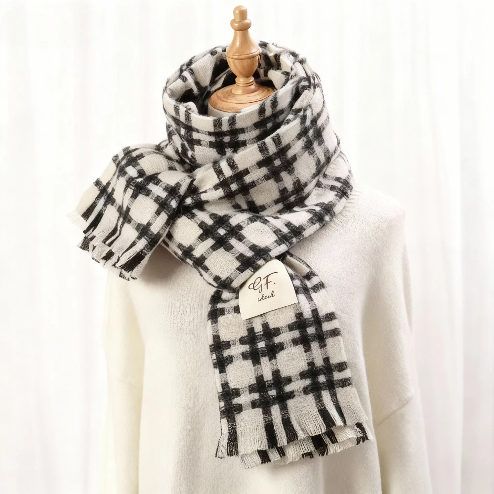 Black and White Plaid Printed Scarf Women's Autumn and Winter Polyester Fiber Scarf Fashionable and Versatile Warm Neck Shawl loading