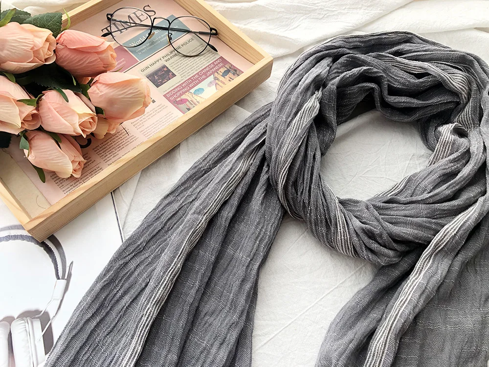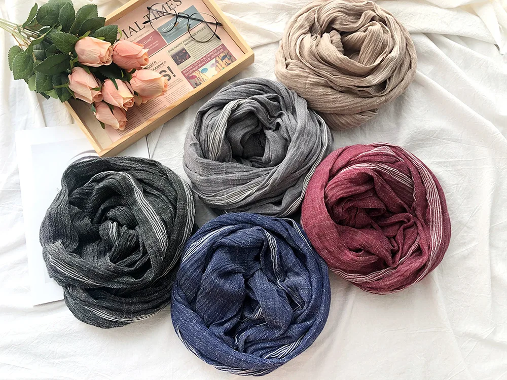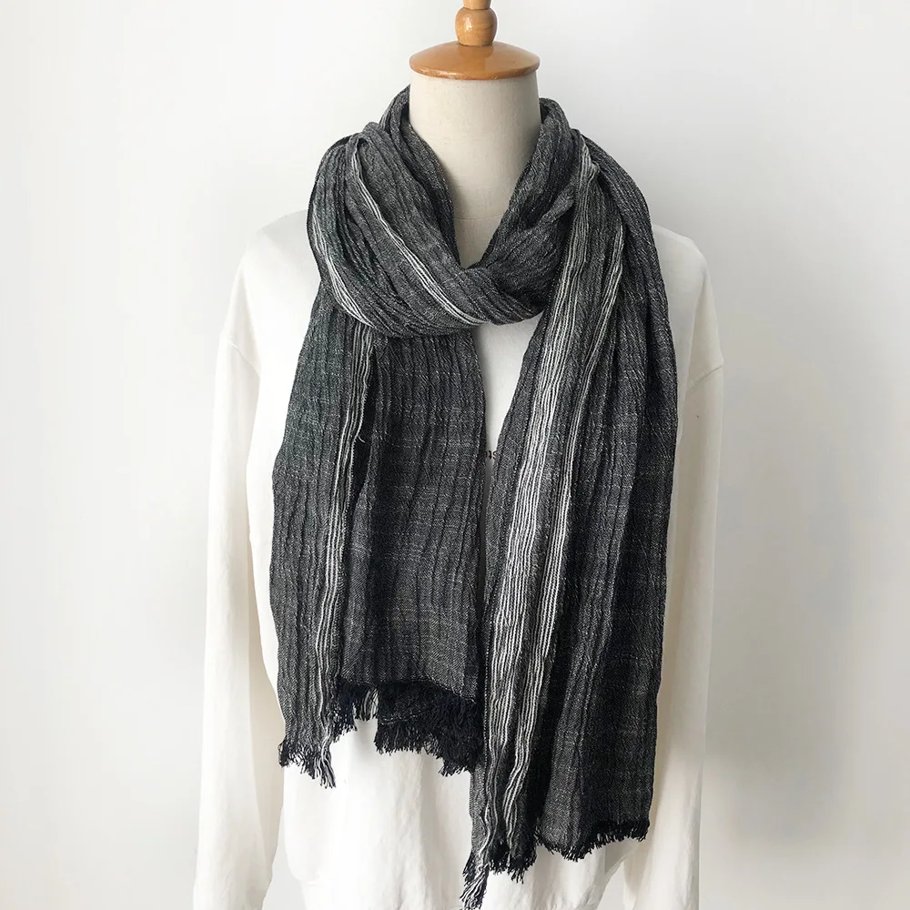 Cotton Linen Men Scarf Autumn Winter Black Navy Striped Tassel Scarves Men's Shawl Wrap Fashion Male Accessories Bufandas loading