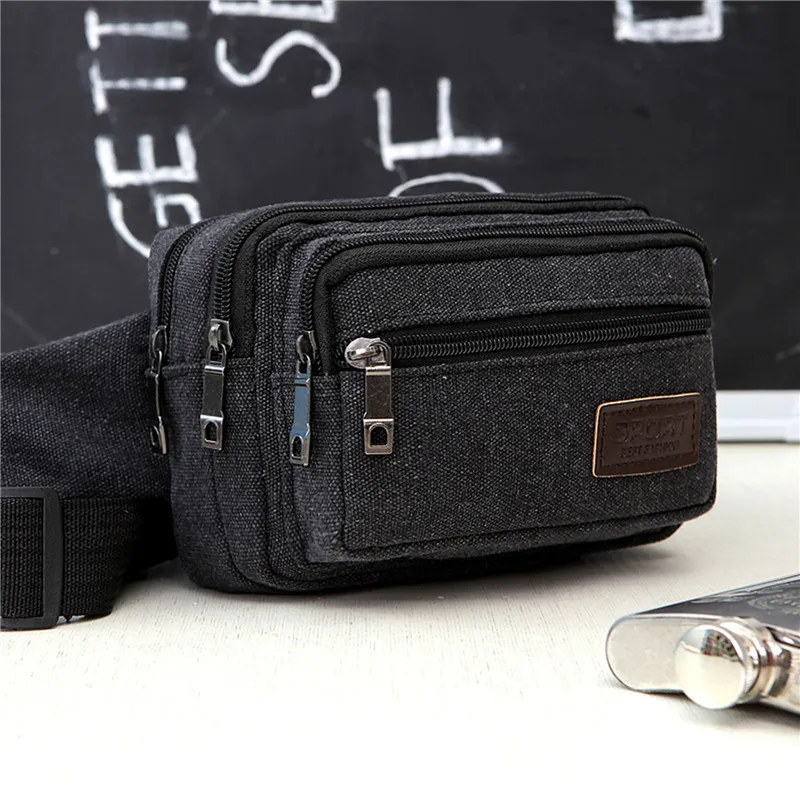 Canvas Waist Bag Outdoor Sports Multifunctional Male Waist Pack High Quality Durable High-capacity Bags Portable Phone Purse