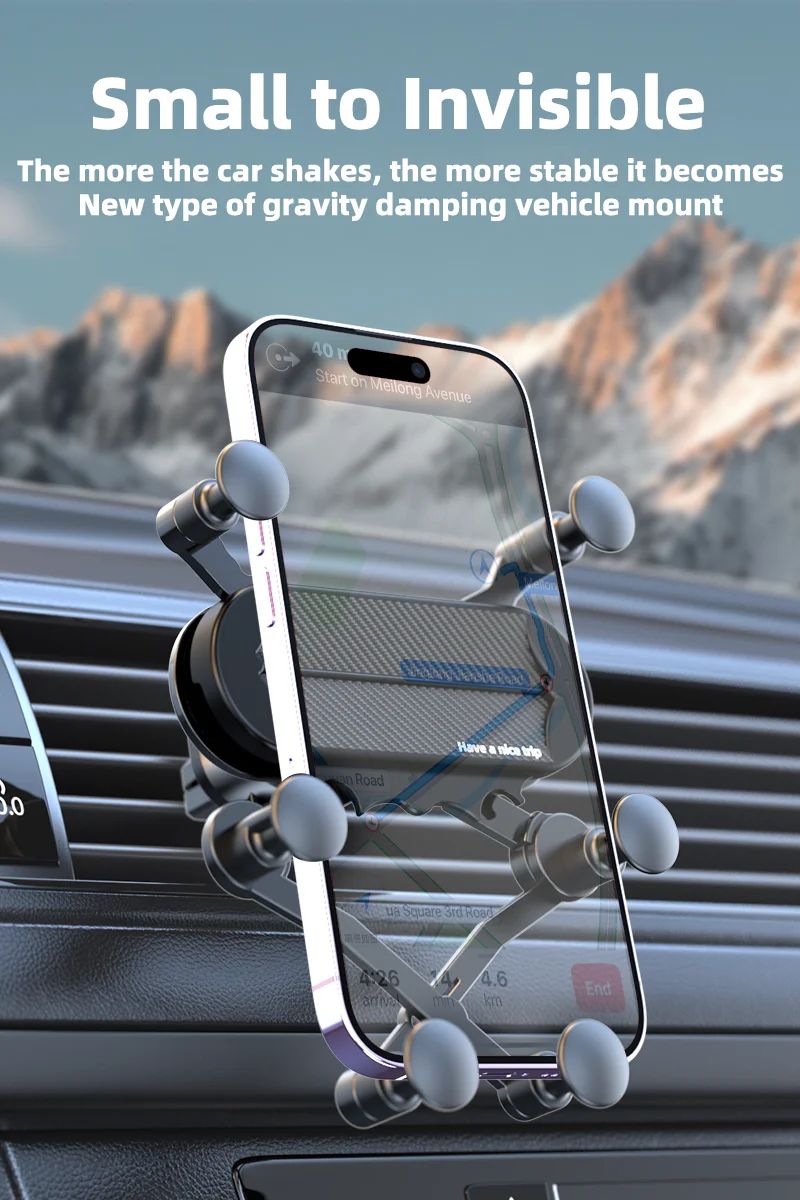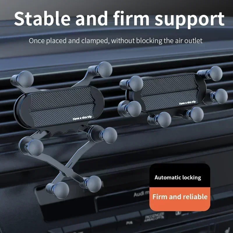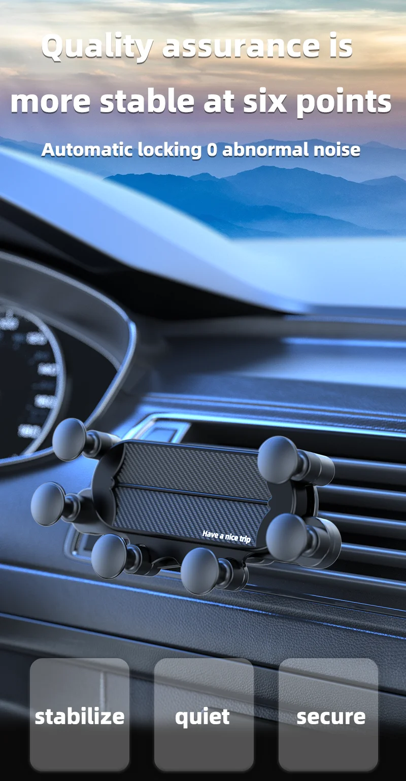 ��Stable Structure-- Flexible vent phone mount for car used a 6-point wrap-around design. The hook and the blades formed a triangular structure when they are attached. So the car iphone holder mount can stay firmly on the vent.