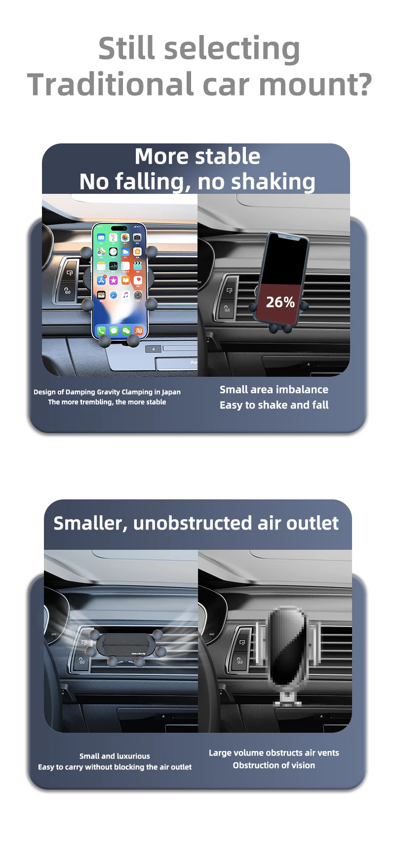 ��Universal Car Mount-- Our vent clip cell phone holder for car has an industry-standard manufacturing joint, which can fit most of the phone mount on the market.