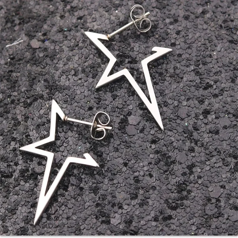 EVISPOL Trend Hip Hop Stainless Steel Earrings Gothic Big Star Punk Stud Earrings For Women Jewelry Party Friends Best Gift