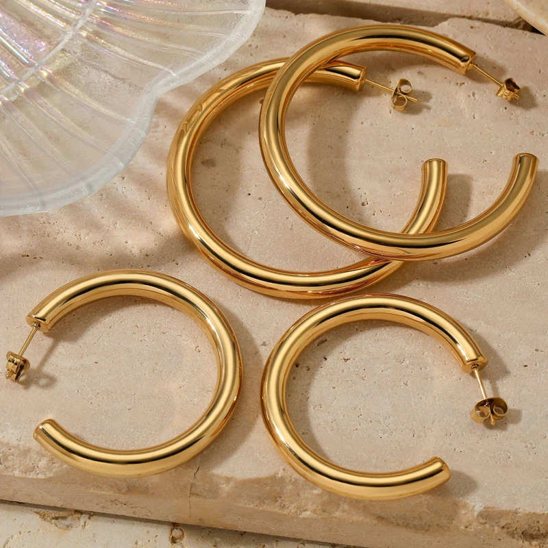 Exaggerated Hollow Thick Big Circle Hoop Earrings For Women Stainless Steel C-Ring Chunky Piercing Earrings Fashion Jewelry Gift