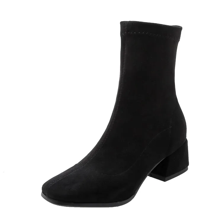 NASBAVI Woman Ankle Boots 2025 Autumn Winter Round Toe Low Heel Flock Black Comfortable Booties Lady Shoes Zapatos Mujer
