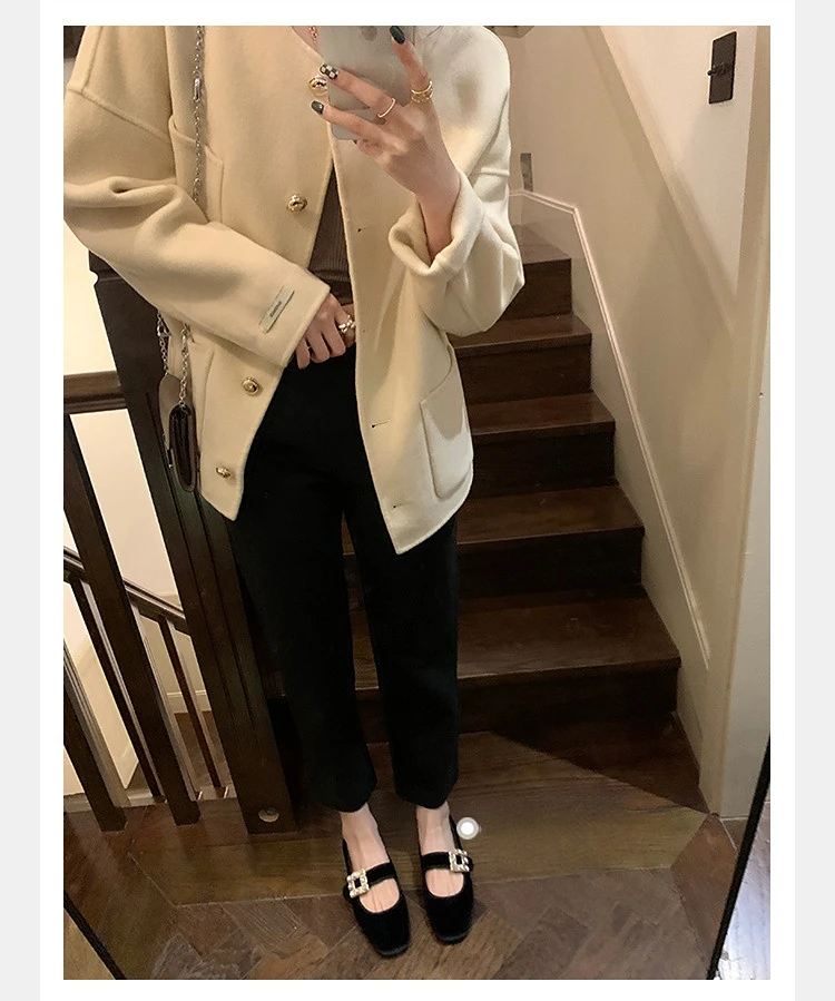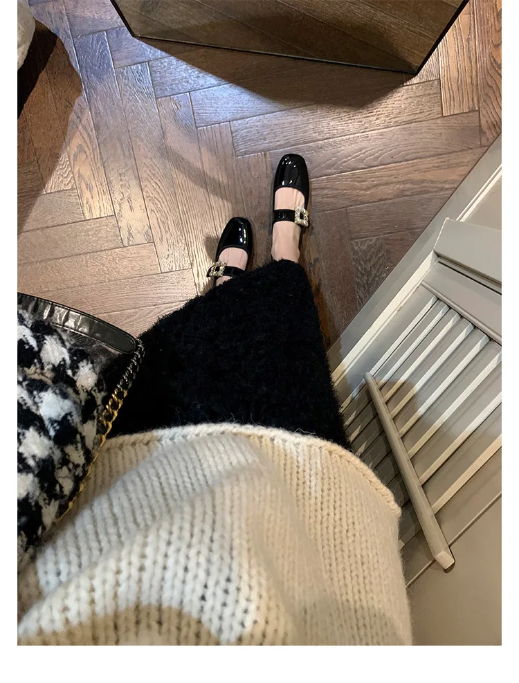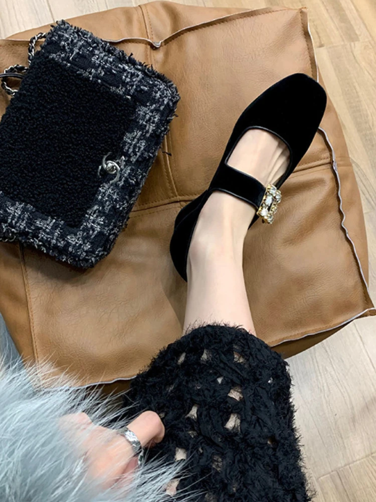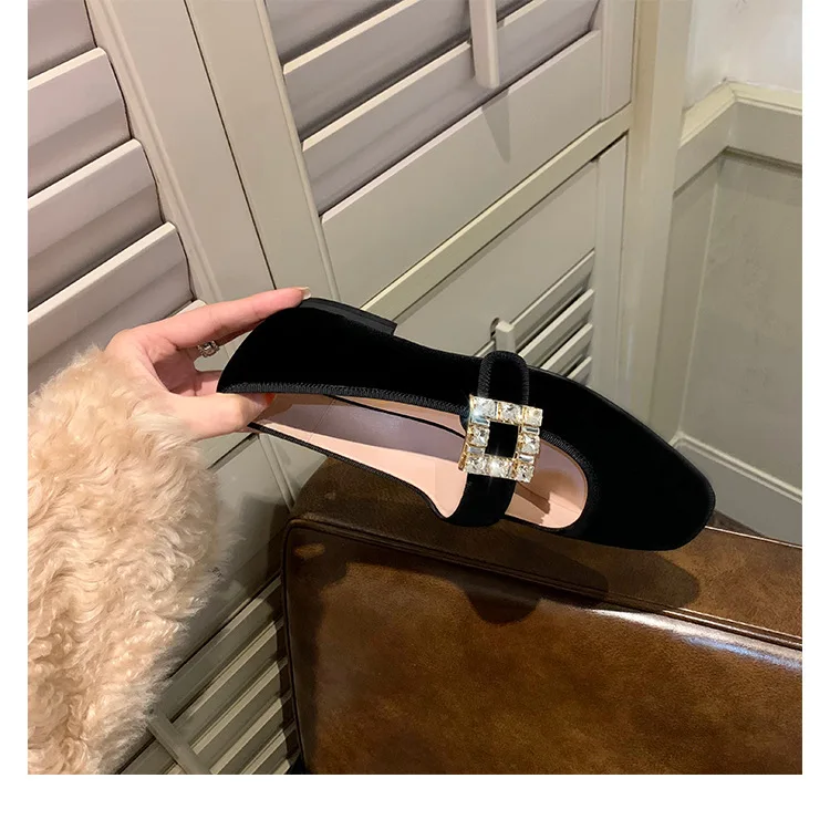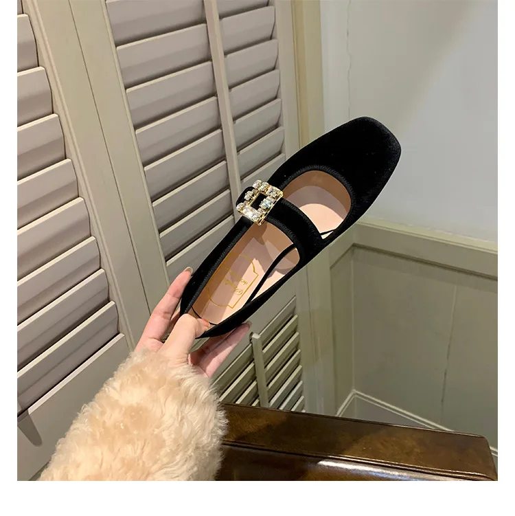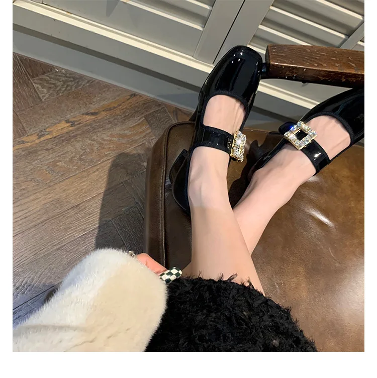 Shoes for Women Autumn New Style Square Head Rhinestone Square Buckle Flat Bottom Mary Jane Single Shoes Women Zapatos De Mujer