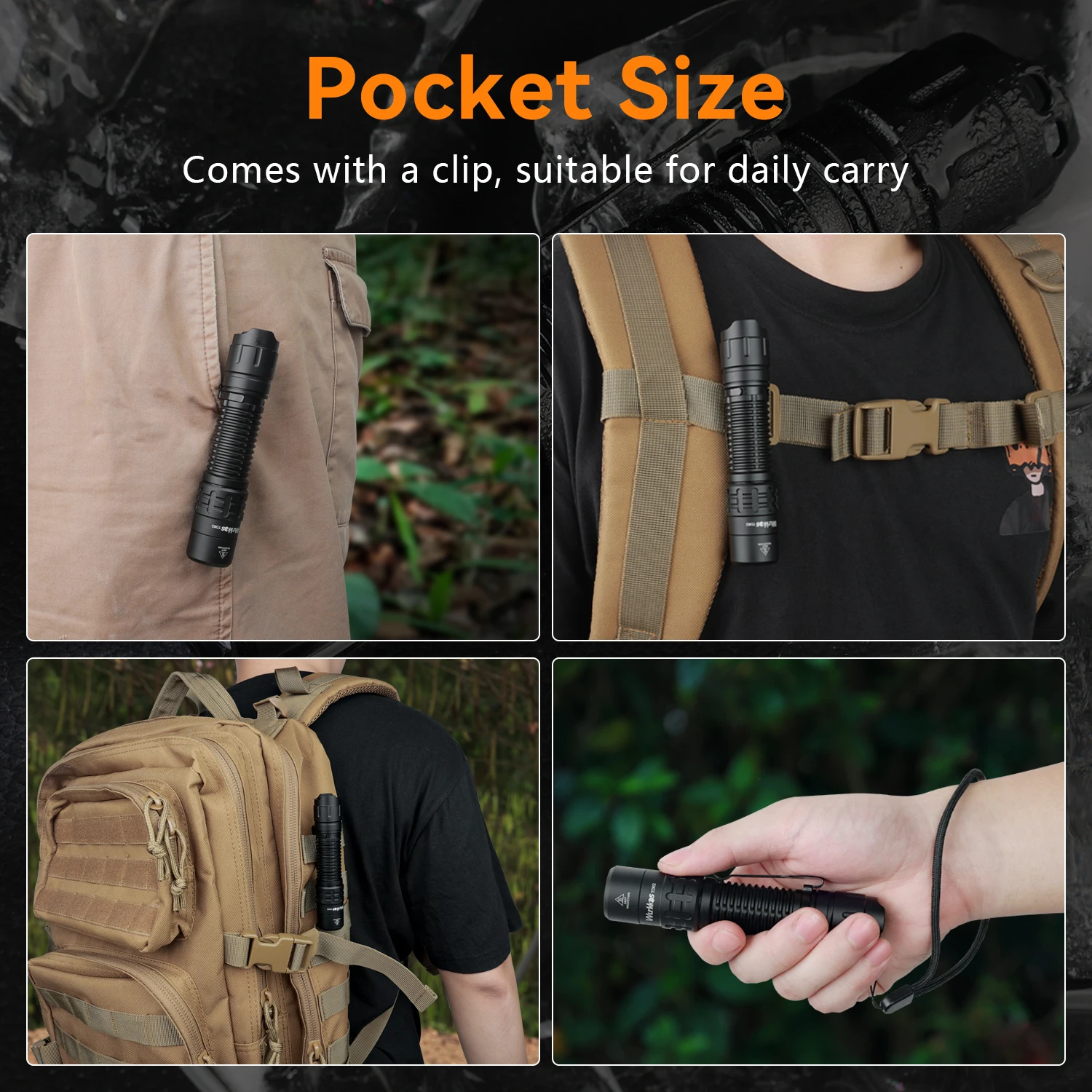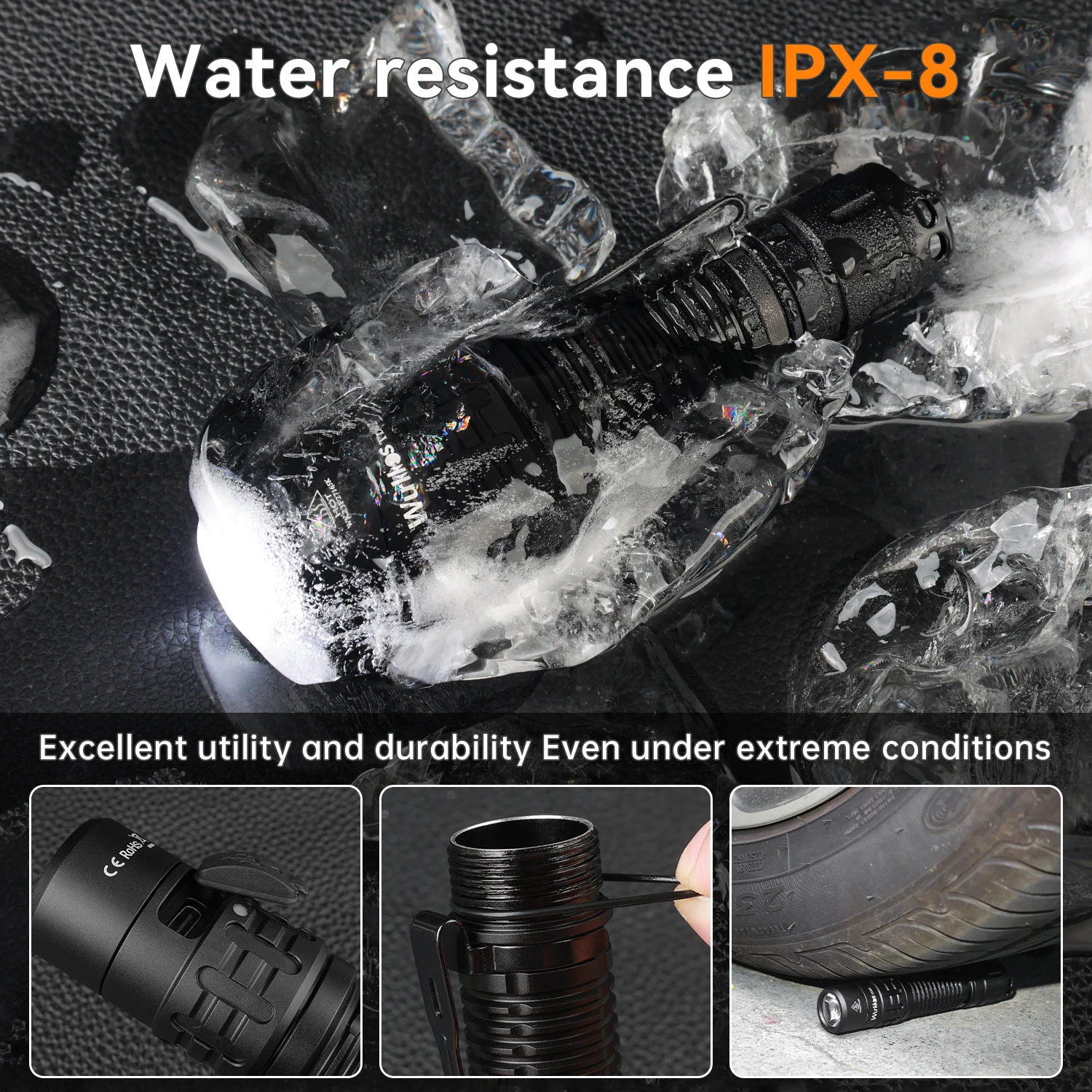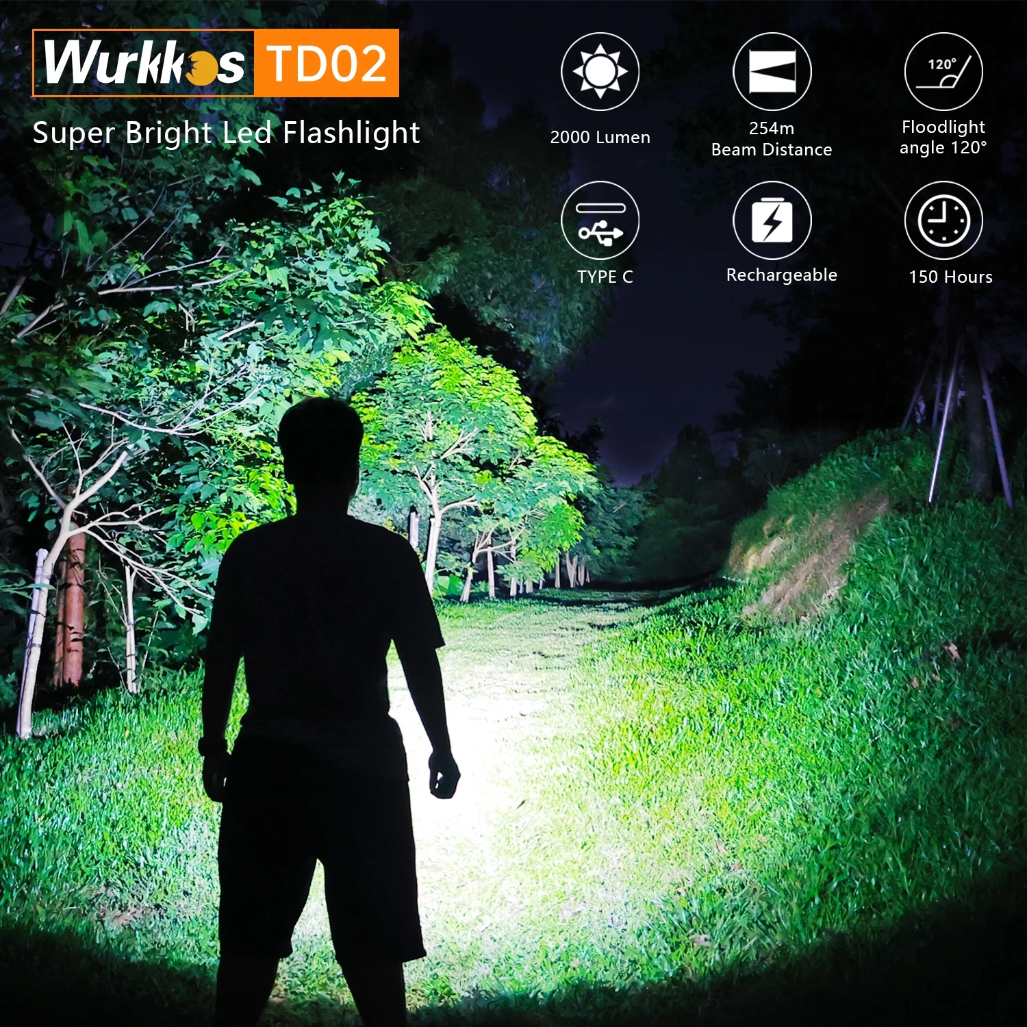 Wurkkos TD02 Tactical Flashlight 2000LM Pocket Torch 18650 Rechargeable EDC Type-C Charging Port Tail Switch IPX8 Waterproof